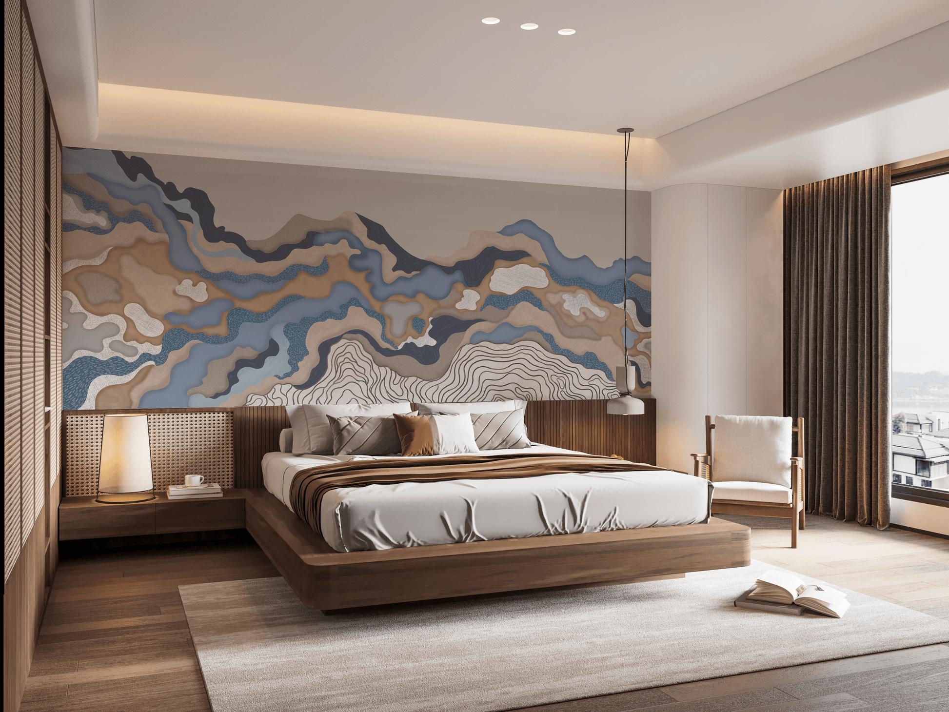 The pattern flows like a whisper across a surface, making it ideal for master bedrooms or restful retreats where subtle drama is required without distraction.